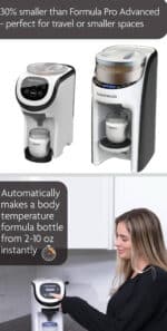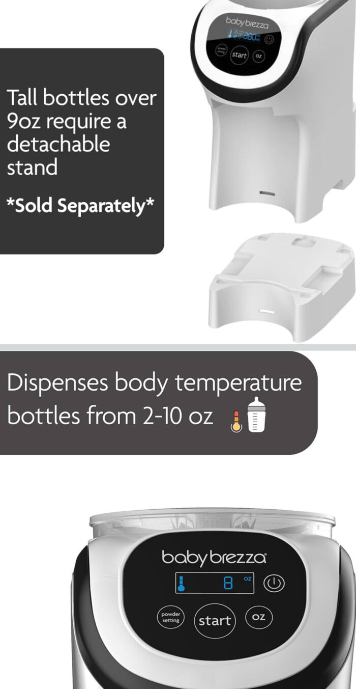 Report AbuseBaby Brezza Formula Pro Mini Baby Formula Mixer Machine Fits Small Spaces and is Portable for Travel– Bottle Makers Makes The Perfect Bottle for Your Infant On The Go, White Brand Baby Brezza Material Plastic Bottle Type Travel Bottle Color White Capacity 10 Fluid Ounces Special Feature Compact FIRST COMPACT FORMULA MAKER – 30% SMALLER THAN THE FORMULA PRO ADVANCED: Same mixing technology as the #1 selling Formula Pro Advanced; Ideal for portability & travel; Perfect to use on nightstands, in nurseries & small kitchens/spaces BUY WITH CONFIDENCE: The Formula Pro Mini comes with a 1-year limited warranty & access to our expert customer support team 7 days a week AUTOMATICALLY MAKES A WARM FORMULA BOTTLE IN SECONDS, WORKS WITH ALL FORMULA & BOTTLE TYPES/BRANDS: Dispenses 2-10 oz of body temperature formula to the perfect consistency every time; Tall bottles typically over 9oz require a stand (sold separately) MORE ACCURATE, CONSISTENT, HYGIENIC AND FASTER THAN HANDMADE BOTTLES: Formula dispensed from airtight powder container; Clinical study showed 1/3 of all bottles made by hand were inaccurate by 10% or more; Removable water tank is dishwasher-safe EASY TO SET-UP & USE WITH ALL DIGITAL CONTROLS: Compatible only with Formula Pro Mini funnel (NOT compatible with Formula Pro Advanced funnel), 1 year limited warranty (not valid if shipped outside the US or if another brand of replacement part is used) TRY OUR ADVANCED MODEL: Search for “Baby Brezza Formula Pro Advanced” on Amazon to automatically make a warm formula bottle with 3 temperature settings & dispense water-only bottles. Plus the Formula Pro Advanced has a larger powder container & water tank MAKE TRAVEL EVEN EASIER: Try the Formula Pro Mini Travel Bag – exclusively designed to carry the Formula Pro Mini & make a bottle directly from the bag; Features comfortable carry handles, waterproof interior & back flap to access the plug BABY BREZZA MAKES PARENTING EASIER: We’ve delighted millions of parents every year globally with our game-changing products. That’s why we’re Moms’ #1 most trusted and recommended brand of baby feeding appliances