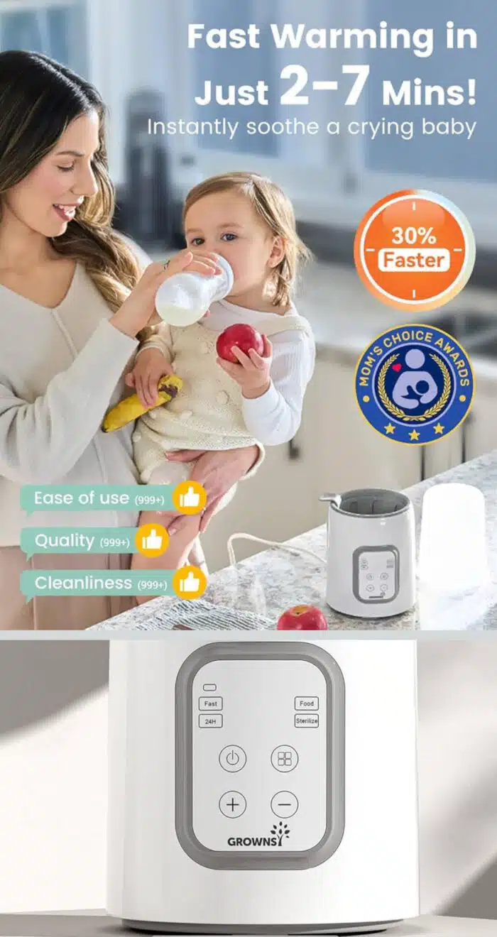 Bottle Warmer, GROWNSY, 8-in-1 baby milk/formula warmer with timer