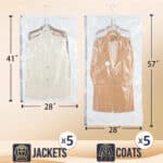 Report AbuseBrand DUORAN Material PA+PE Color Clear Product Dimensions 57″L x 28″W x 0.04″H Special Feature Hangable, Vacuum Sealed Load Capacity 15 Pounds Electric Pump – Our vacuum seal bags for clothing travel include an electric pump—60 kPa cordless with a 1500 mAh battery—for up to 40 uses per charge; removes up to 90% of air in ~25 seconds to create an airtight seal for clothing, blankets, and bedding, maximizing luggage space. 5-Layer Protection – These premium space bags vacuum storage bags are made from reinforced PA+PE material to protect large jackets, coats, and jumbo blankets. They are waterproof, dustproof, and puncture-resistant, keeping garments clean, sealed, and wrinkle-free during storage. Triple-Seal Valve – Features a turbo valve with a triple-seal gasket and a dual color-changing zipper sealer to lock in air tight. This magic compression mechanism guarantees your ropa stays sealed in vacío, preserving garments and preventing moisture. 5-Ring Hanging – Heavy-duty hanging design holds up to five garments (up to 15 lbs) per bag, helping you maximize closet space. Simply hang these hanging saver bags in your wardrobe to guardar ropa, coats, and jackets al armario, freeing up to 80% of space. 3-in-1 Space Saver – Functions as a vacuum compression bag, hanging garment protector, and dustproof storage solution. Perfect for home storage, travel, and packing clothes for trips—use these bolsas to pack ropa, blankets, and coats, saving room in luggage and closets.