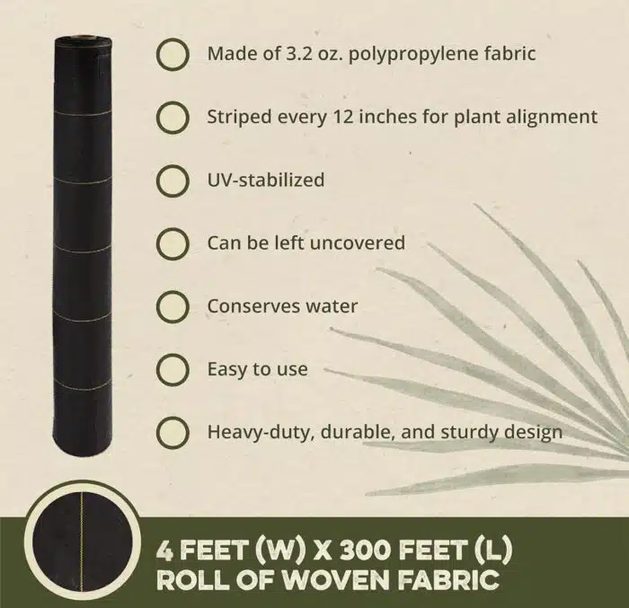 DeWitt Sunbelt Woven Ground Cover, 3.2 oz, Black, 4′ x 300′ – Durable Weed Barrier Fabric for Greenhouse, Garden, Outdoor Display & Landscaping