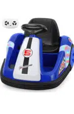 Innovative Design: Unlike other bumper cars, our toddler electric car features large wheels giving it the ability to drive outdoors easily. This creative design sets it apart from other ride-on bumper cars, enhancing play-time variety for your kids. Two Driving Modes: Enjoy the fun with two driving options—steering wheel control and a convenient remote control. This electric bumper car for toddlers offers manual control speed 2.2 mph and remote speeds ranging from 1.6 to 2.2 mph, ensuring a safe yet thrilling ride for young adventurers. Cute Personalization Options: Each bumper car for kids comes with adorable DIY stickers, allowing children to customize their ride and express their inventiveness, making each ride a creative feeling filled with fun. Perfect Size and Capacity: Measuring 27.6*21.7*18.1 inches, this baby bumper car’s capacity weight up to 66 lbs, making it an ideal ride-on bumper car for toddlers. It provides just the right balance of area and steadiness for children to enjoy. Comprehensive Features: This electric ride-on bumper car comes with Bluetooth Music and LED lights, adding excitement to every ride and improving kids’ athletical skills at the same time!
