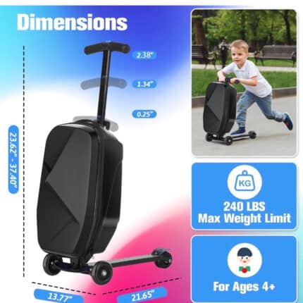 Scooter Luggage For Kids, Hardside Ride On Suitcase For Kids Ages 4-15 Multifunctional Lightweight Foldable Carry On Luggage