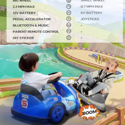 ELEMARA 12V Kids Bumper Car with Big Wheel, 2.2 Mph Max, Toddler Bumper Cars with Remote